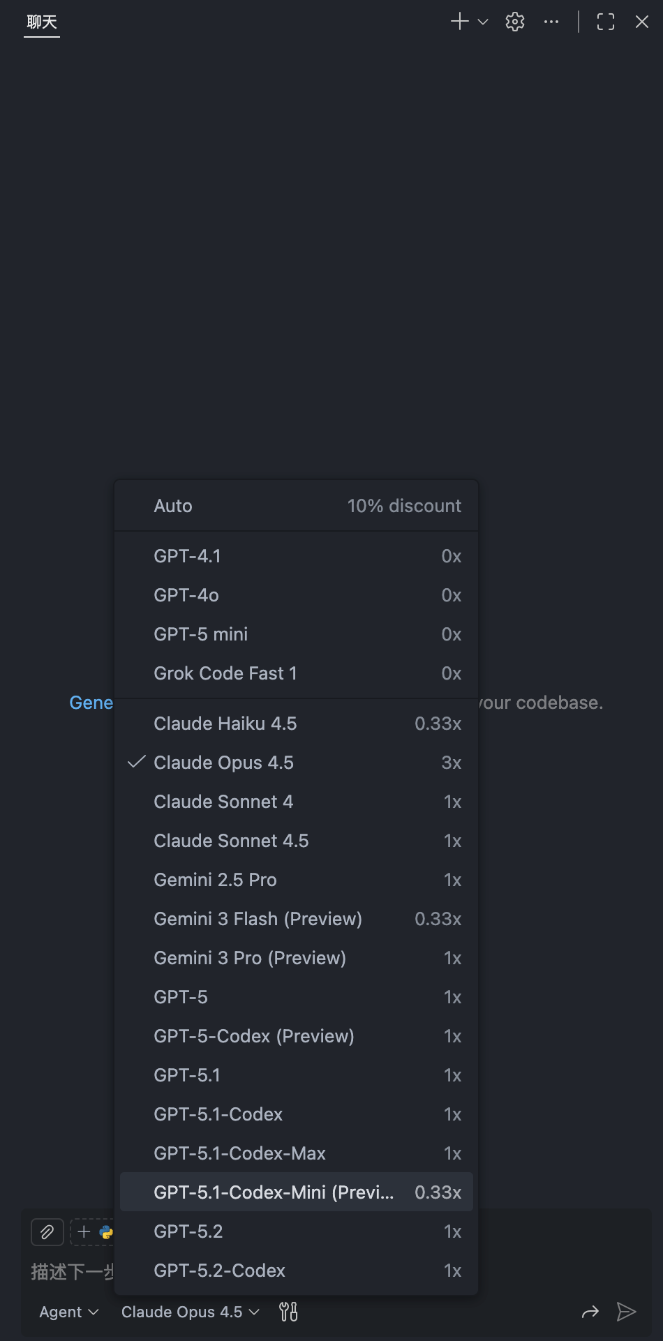 激活后,在 VS Code 的 Chat 面板上方,您可以自由切换 Claude 3.5 Sonnet / Opus、GPT-4o、Gemini 1.5 Pro 等顶级模型!